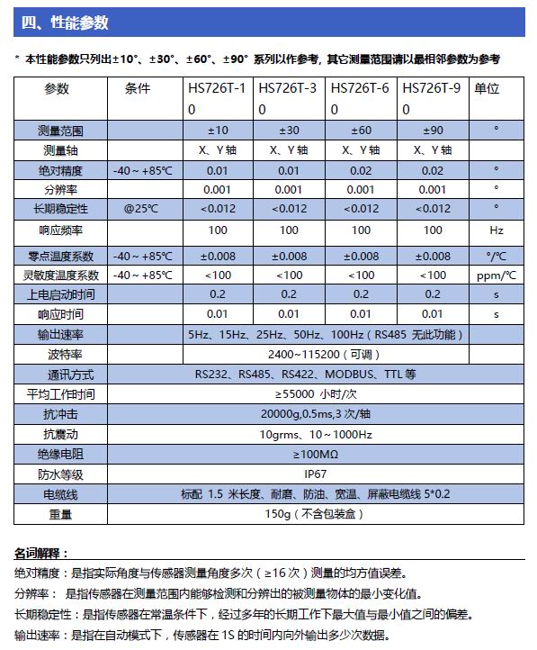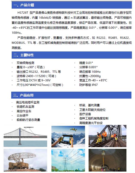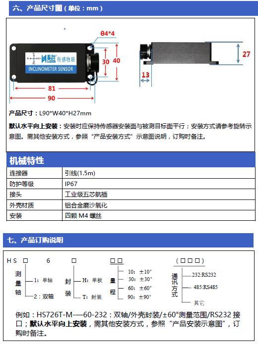 HS726T-M數(shù)字型中精度雙軸傾角傳感器