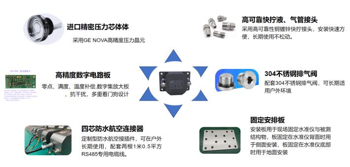 沉降是一個緩慢過程,在任何較短時期,反映到儲液罐液面的變化都會非常細微,能否實時、精確地檢測到這個微小變化,反映出地基的微小沉降,做到防微杜漸,是衡量一個靜力水準(zhǔn)儀產(chǎn)品好壞的關(guān)鍵,這對系統(tǒng)所集成液位傳感器的實時性、精密性提出了極高要求。由于是戶外安裝,液位傳感器的溫度系數(shù)、防水性、防雷擊都是關(guān)鍵技術(shù)。另外,靜力水準(zhǔn)儀整機的安裝尺寸和易更換性也是重要的技術(shù)指標(biāo),是由一個高精度的液位計,加上儲液罐、保護罩、通聯(lián)氣、水管等部件組成。